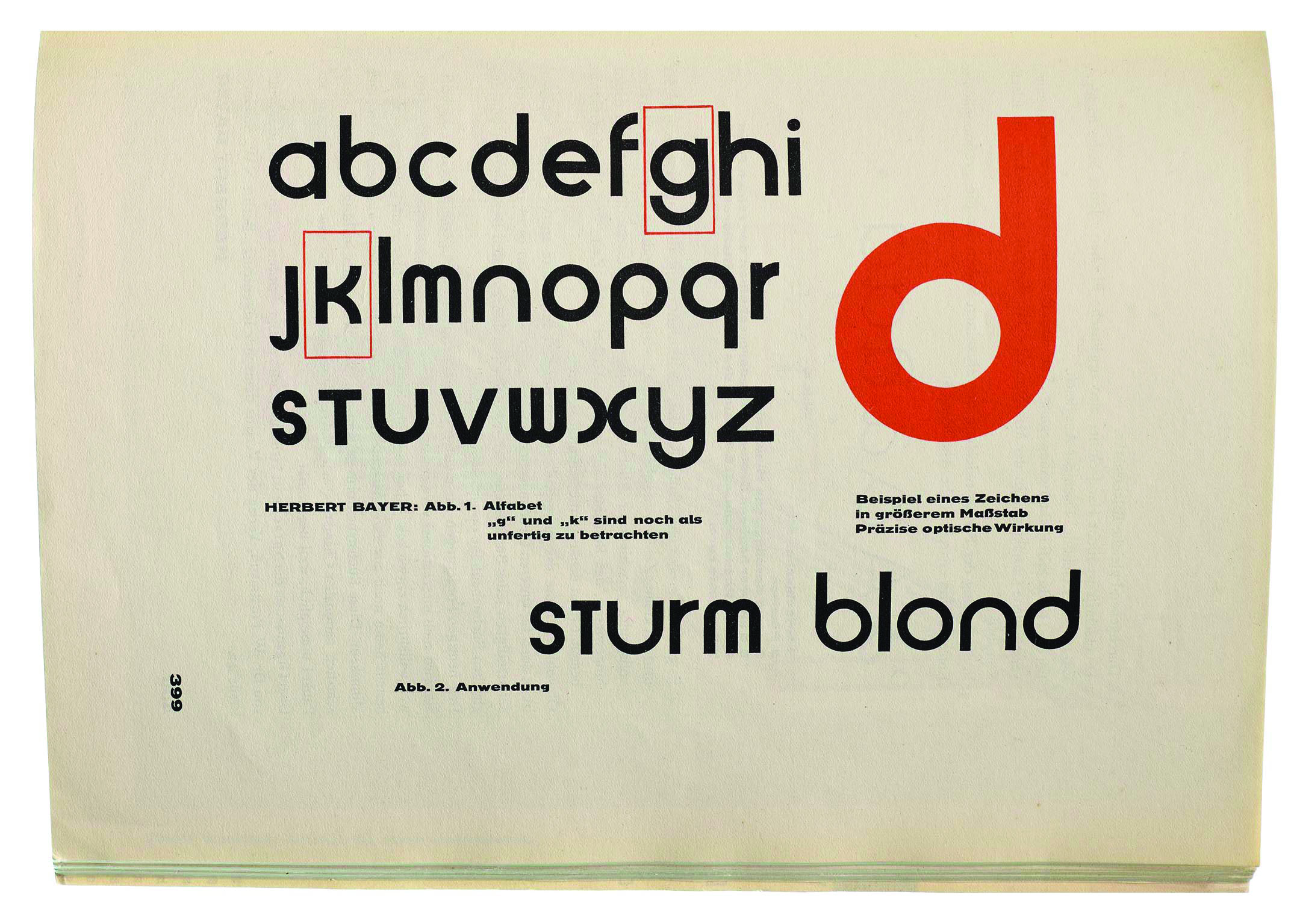 در سال 1925 هربرت بایر، دیزاینر جوان باهاوس، قلم یونیوِرسال تایپفیس را دیزاین کرد که میتوان آن را نخستین تلاش جدی برای ایجاد نوعی زبان نوشتاری کاملاً مدرن در نظر گرفت. این قلم بر اساس اشکال هندسی ساده، بهویژه دایره و خط راست، ساخته شد و بهعمد از حروف بزرگ صرفنظر کرد تا نظام نوشتاری یکدستتر و منطقیتری ارائه کند. بایر بر این باور بود که حروف بزرگ میراثی غیرضروری از دوران باستاناند و نوشتارِ نوین باید بازتابی از کارکردگرایی و سادگی مدرنیستی باشد. حاصل کوشش وی خلق تایپفیسی پیشرو، کاربردی و آیندهنگر بود. این رویکرد نهتنها در دیزاین گرافیک مدرن به کار گرفته شد، بلکه بعدها در ابداع فونتهای دیجیتال نیز الهامبخش بود و نشان داد که حتی نوشتار هم میتواند به بخشی از طرح بزرگ مدرنیسم برای بازآفرینی زندگی روزمره بدل شود.