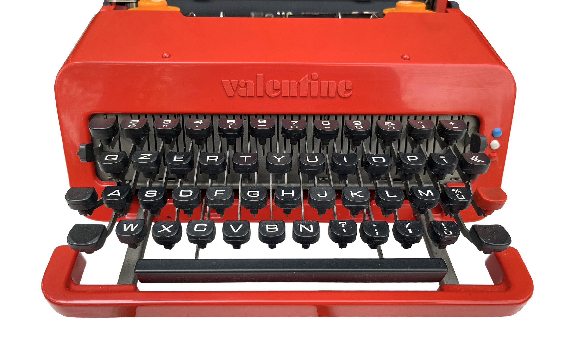 اعتراضات ماه مه 1968  نقطۀ عطفی در تاریخ اروپا رقم زده بود. جنبش‌های اجتماعیِ دانشجویی و آزادی‌خواه در سراسر جهان پا گرفته بود. عصیان و سرکشی، مفهومی برابر با آزادی پیدا کرده بود و جوانان مشتاقِ نوعِ جدیدی از زندگی بودند. رنگ قرمز، به عنوان مظهر اغواگری، در آرایش مدل‌های تبلیغاتی، حسی اروتیک ایجاد می‌کرد و هم‌زمان به عنوان رنگ پرچم در راهپیمایی‌های اعتراضی، در هر گوشۀ جهان، دیده می‌شد. رها بودن و سبک زندگی هیپی‌ها به اروپا رسیده بود و سفر کردنِ ماجراجویانۀ بدون مقصد، مُد روز بود. سوتساس با دیزاین ماشین‌تحریر ولنتین شیئی خلق کرد که همراهِ این تغییرات گسترده باشد. سوتساس از یکنواختی دیزاینِ ماشین‌تحریر فراتر رفت تا به آن شخصیتی دوست‌داشتنی ببخشد. او به هنر پاپ روی آورد و با الهام از  نقاشی‌های تام وسلمن (Tom Wesselmann) کلاهک‌های نارنجی نوار ریبون ماشین‌تحریر ولنتین را ساخت.