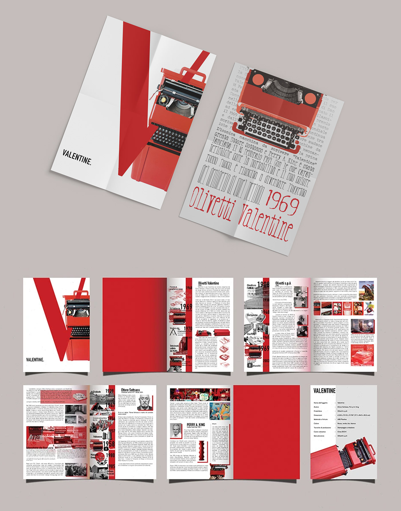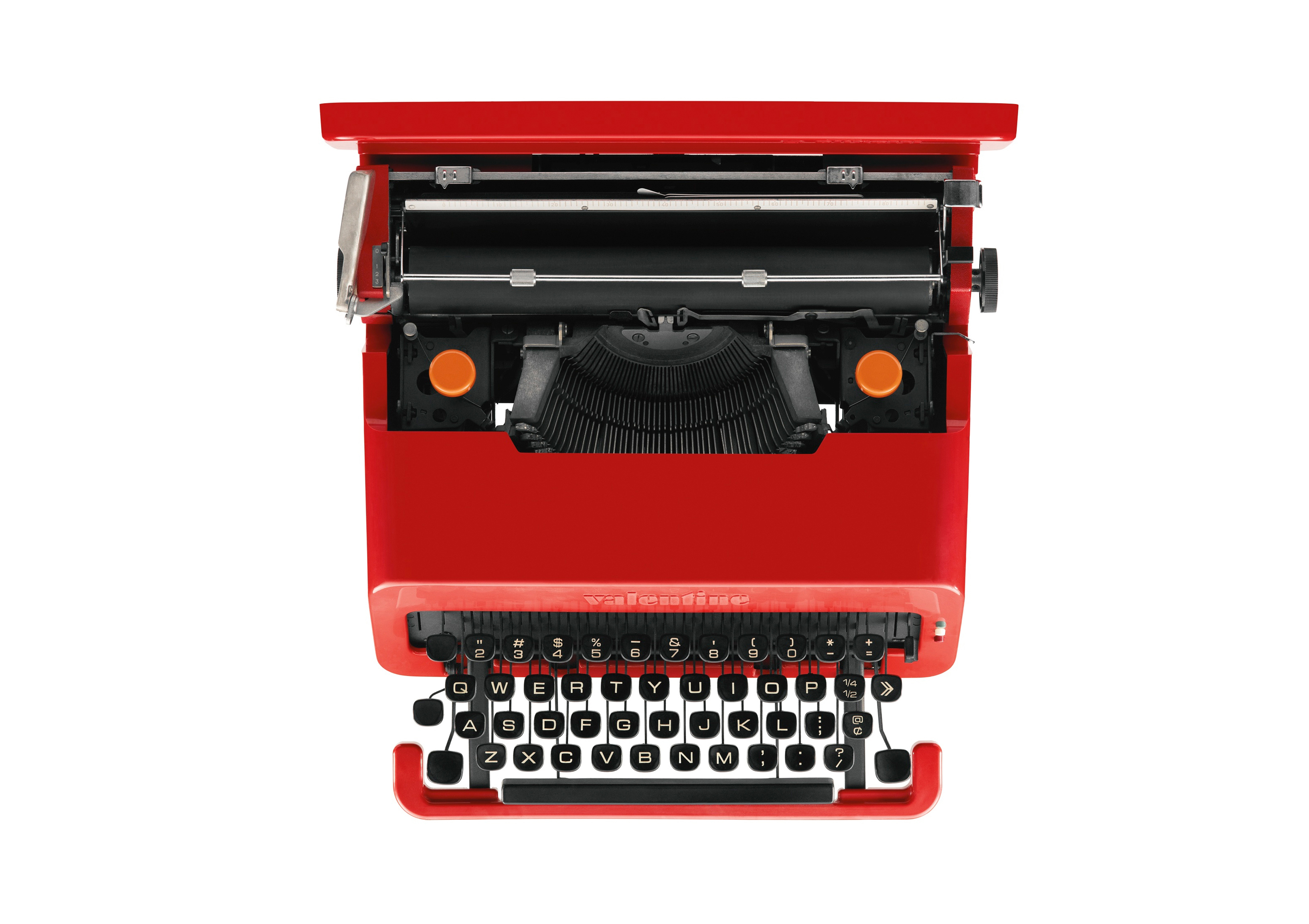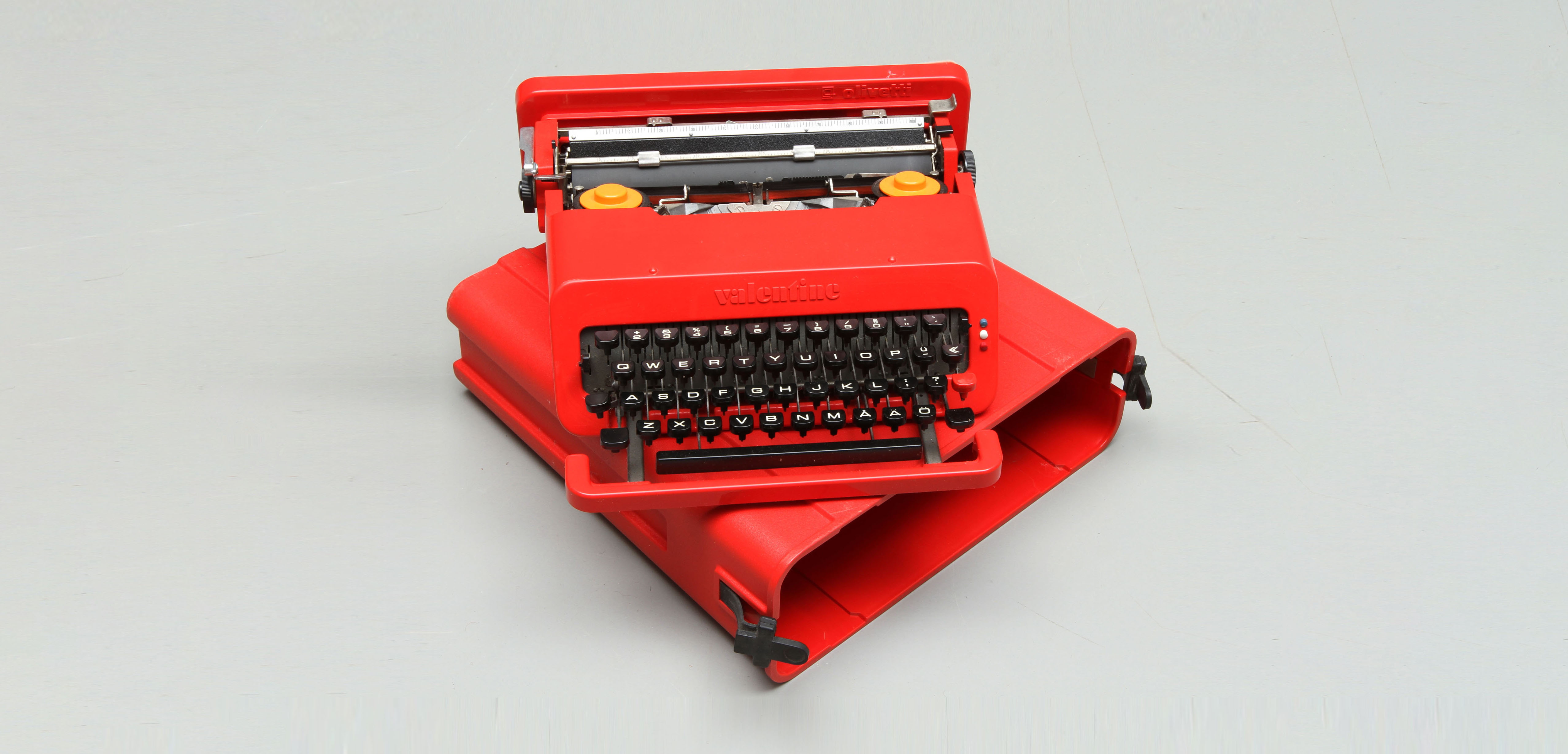 ماشین‌تحریر ولنتین در واقع نسخه‌ای بازدیزاین شده از ماشین‌تحریر افسانه‌ای لِتِرا32  (Lettera32) بود که معمار و دیزاینر اتریشی-ایتالیایی، اتوره سوتساس (Ettore Sottsass) با همکاری پری ای. کینگ (Perry A. King) دیزاین کرده بودند. ماشین‌تحریری با وزن حدود چهار کیلوگرم که در ساختار بدنۀ آن به‌جای آلومینیوم از پلاستیک اِی‌بی‌اس(ABS)  استفاده شده بود که هم قابلیت شکل‌پذیری فوق‌العاده و هم وزن بسیار کم‌تری داشت. ماشین‌تحریری که به گفتۀ خودِ سوتساس «برای استفاده در هر مکانی به جز دفتر کار اختراع شده است، تا کسی را به یاد ساعات کار یکنواخت نیندازد. بلکه بیشتر برای آن ساخته شده تا همراهی باشد برای شاعران تازه‌کار در تعطیلات آرام در یک روستا، یا برای ارائۀ زیباییِ یک شیء بسیار رنگارنگ روی میز در یک آپارتمان استودیویی».