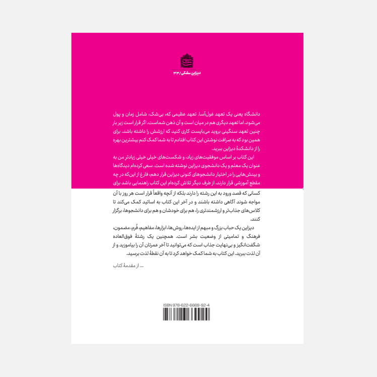 این کتاب بر اساس موفقیتهای زیاد، و شکستهای خیلی خیلی زیادترِ من به عنوان یک معلم و یک دانشجوی دیزاین نوشته شده است. سعی کردهام دیدگاهها و بینشهایی را در اختیار دانشجوهای کنونی دیزاین قرار دهم، فارغ از اینکه در چه مقطع آموزشی قرار دارند. از طرف دیگر تلاش کردهام این کتاب راهنمایی باشد برای کسانی که قصد ورود به این رشته را دارند بلکه از آنچه واقعاً قرار است هر روز با آن مواجه شوند آگاهی داشته باشند و در آخر این کتاب به اساتید کمک میکند تا کلاسهای جذابتر و ارزشمندتری را، هم برای خودشان و هم برای دانشجوها، برگزار کنند.